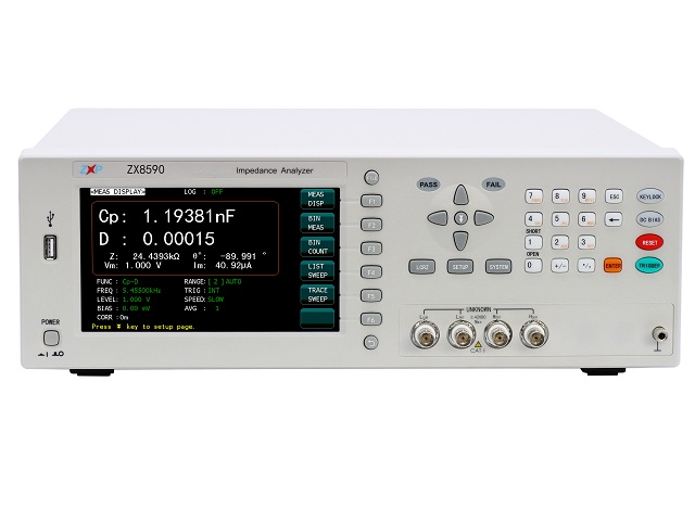 ZX8590系列高頻精密阻抗分析儀:使用自動平衡電橋技術及四端對開爾文測試端、測量頻率范圍涵蓋20Hz~25MHz,最小分辨率1mHz,基本測量精度可達0.05%