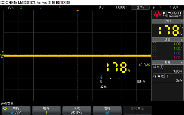 以上可見,使用簡易運放阻抗測量電路虛地端電壓峰峰值高達59mV,而使用自動平衡電橋原理的虛地端電壓峰峰值僅為2mV,所以:使用自動平衡電橋的虛地性能遠遠好于使用一個簡易運放做測量的電路。